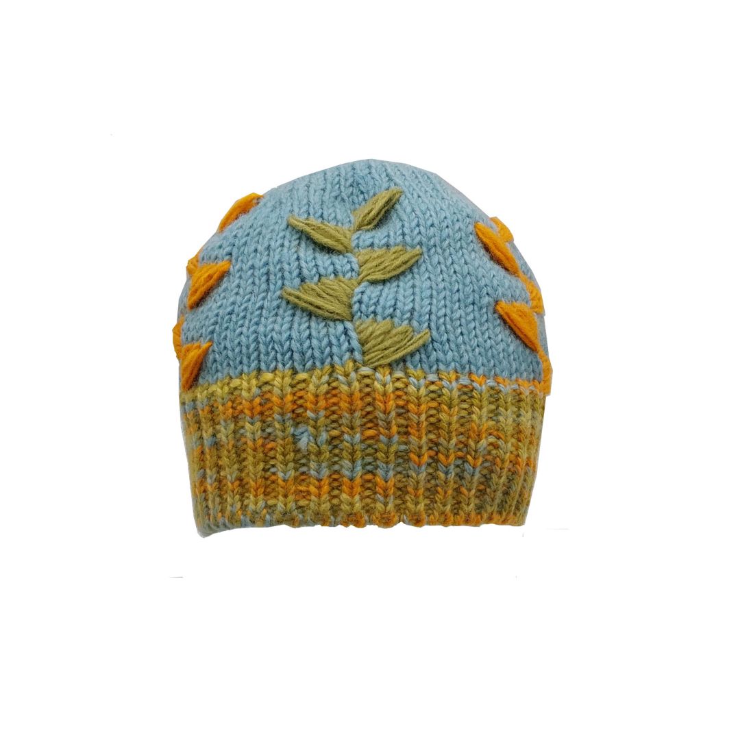 Pullon Hat with Leaf pattern embroidery and mixed color Rib.